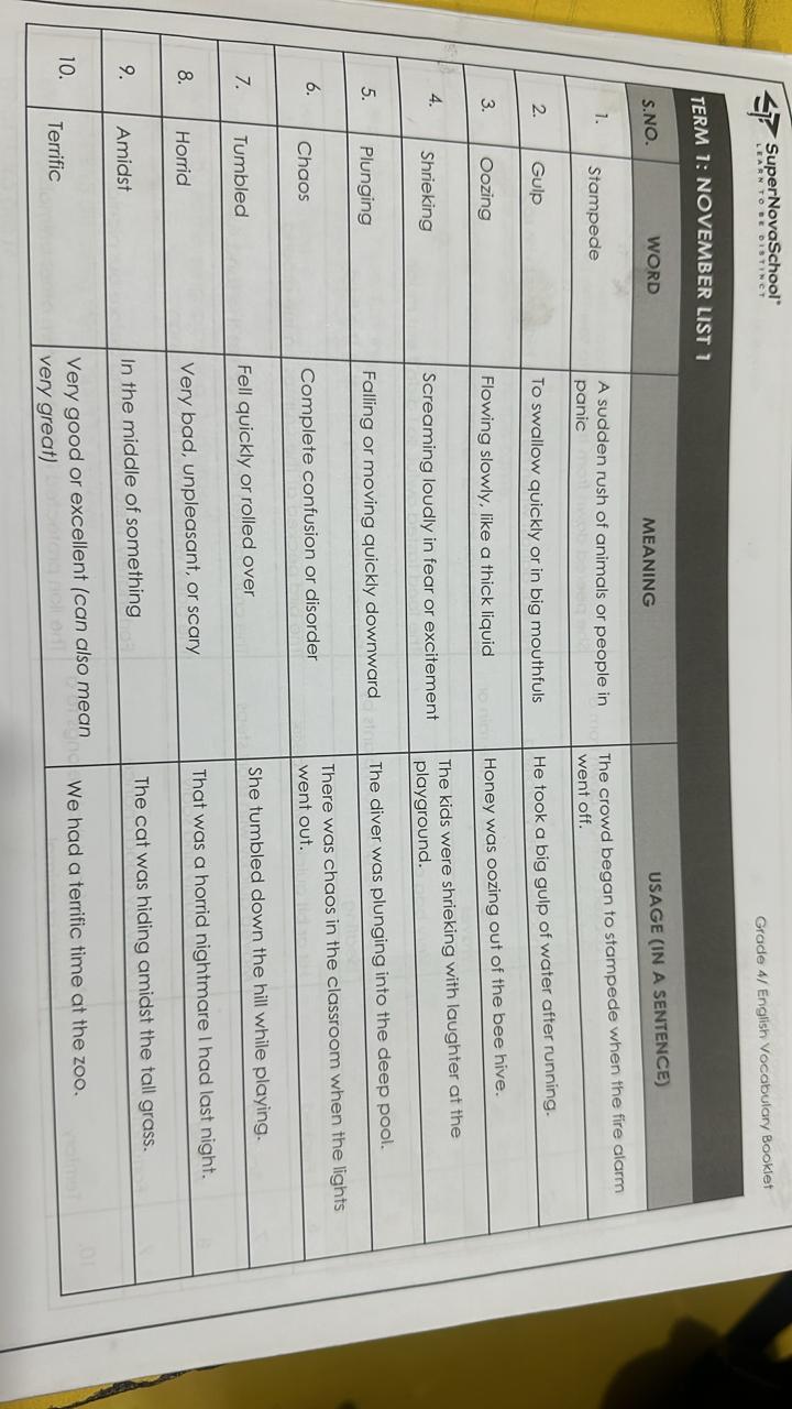 English 4 Jupiter OCTOBER lists 1-2 test again on Thursday 30th October. Learn spellings, words' meanings, and sentences..