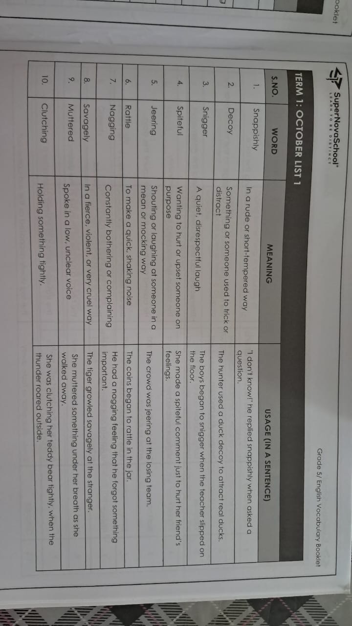 Grade 5 Jupiter and 5 Mars: Revise October vocabulary list :2 for a quiz..