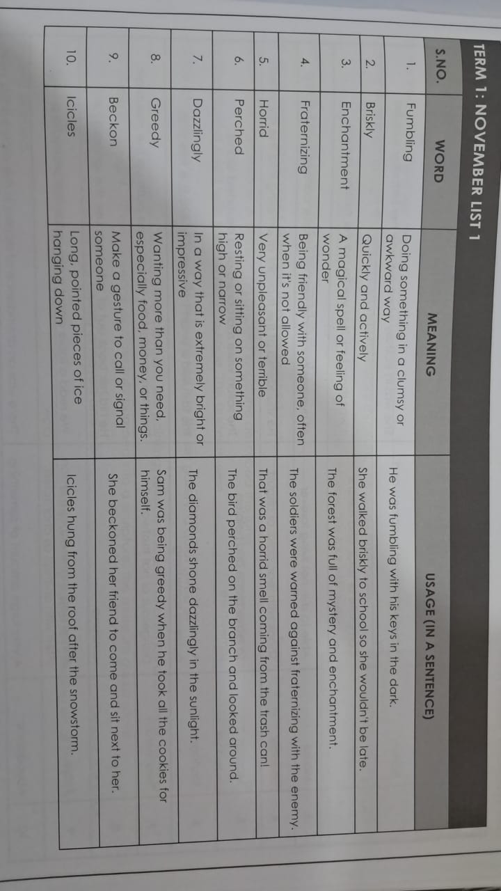 English grade 5 Mercury: Test of November list 1 on Friday.(learn spellings, meanings and sentences).