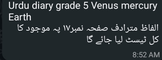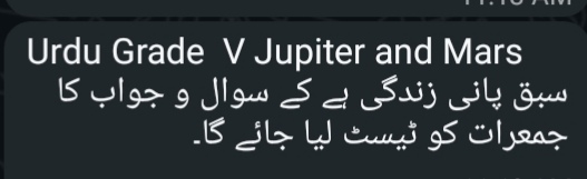 5 Jupiter 5 Mercury Test next week Sunnah of the Holy Prophet Note: Revise from the book.