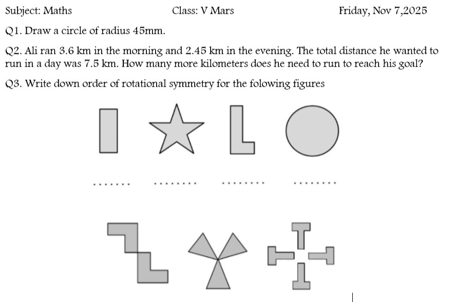 7-11-2025 Mathematics Grade V Jupiter Do the given Worksheet..