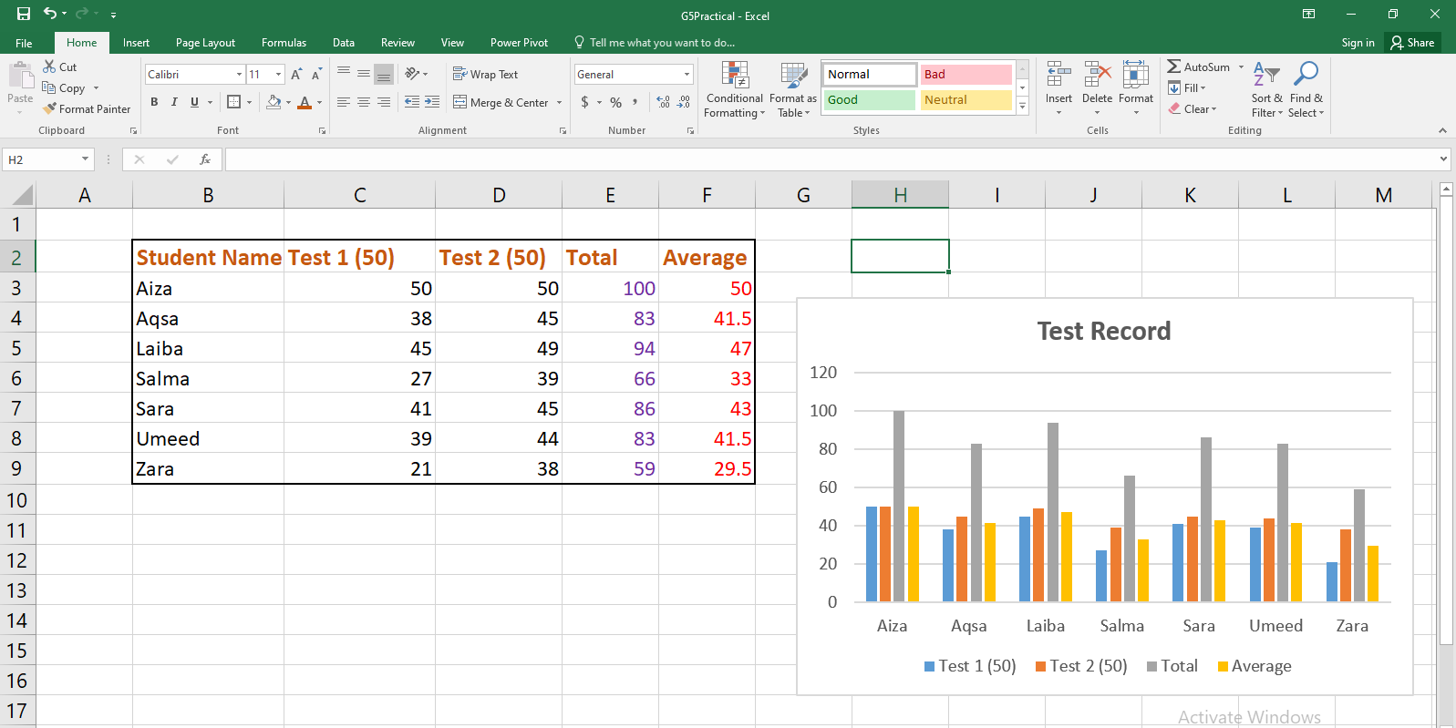 Practical topic to practice: * Making a table in MsExcel * Adjusting column width and height * Changing Font, Font Colour, Font Style * Calculating Sum using formula * Calculating Average using formula * Sorting * Applying thick border * Creating a Column Chart * Saving the file Note: Output is attached.