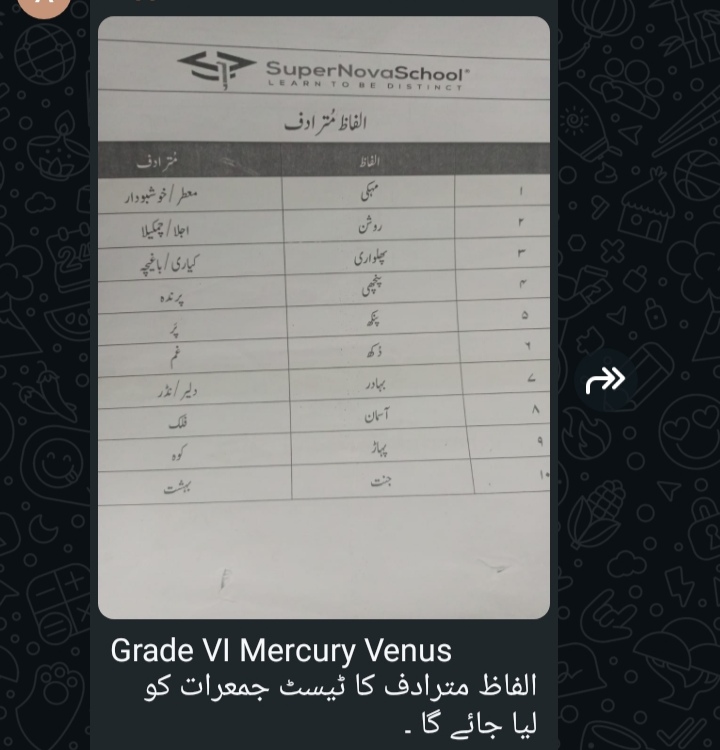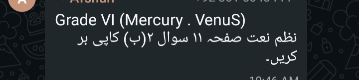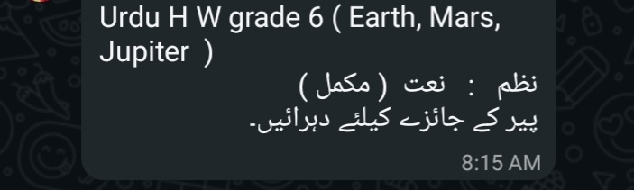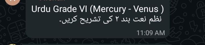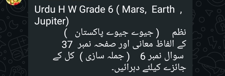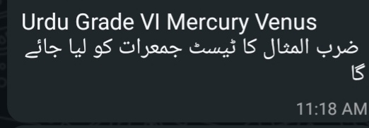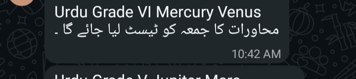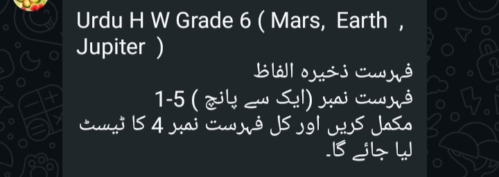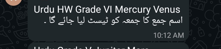 Islamiat VI Jupiter Test of Ch 1 will be taken on Wednesday.