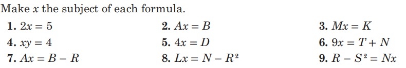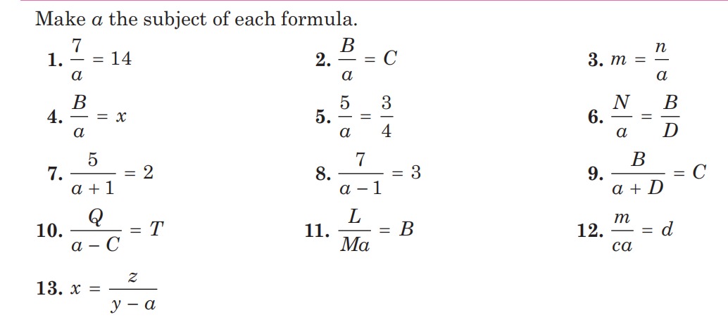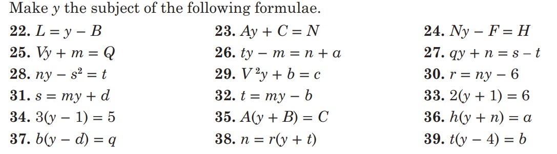 1) Solve the given worksheet on loose sheets. 2) Bring the solved worksheets of "Changing the subject" & Linear equations tomorrow.