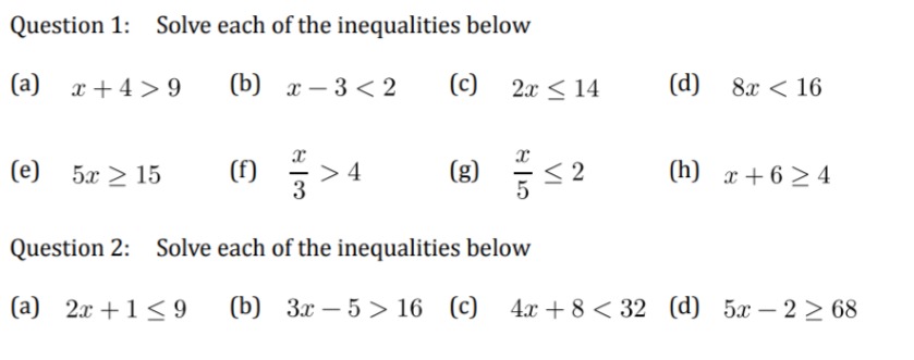 1) Reminder: Test of Linear Inequality & Word problems on Monday 2) Solve the given questions in the notebook.