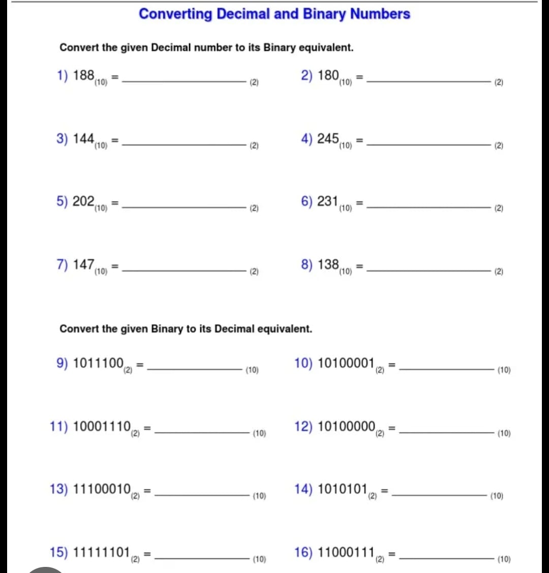 Computing Homework Read page 11 of your resource booklet and solve task 5 of topic 4.3 A class test of the binary to decimal and decimal to binary conversions will be taken next week..