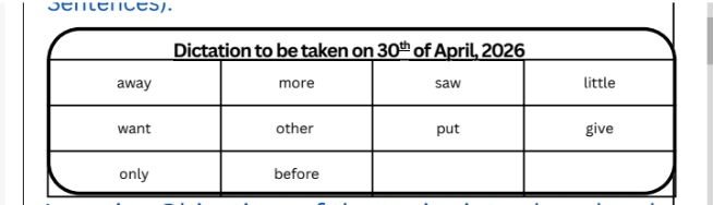 : Dictation will be taken on Thursday 30-4-26..