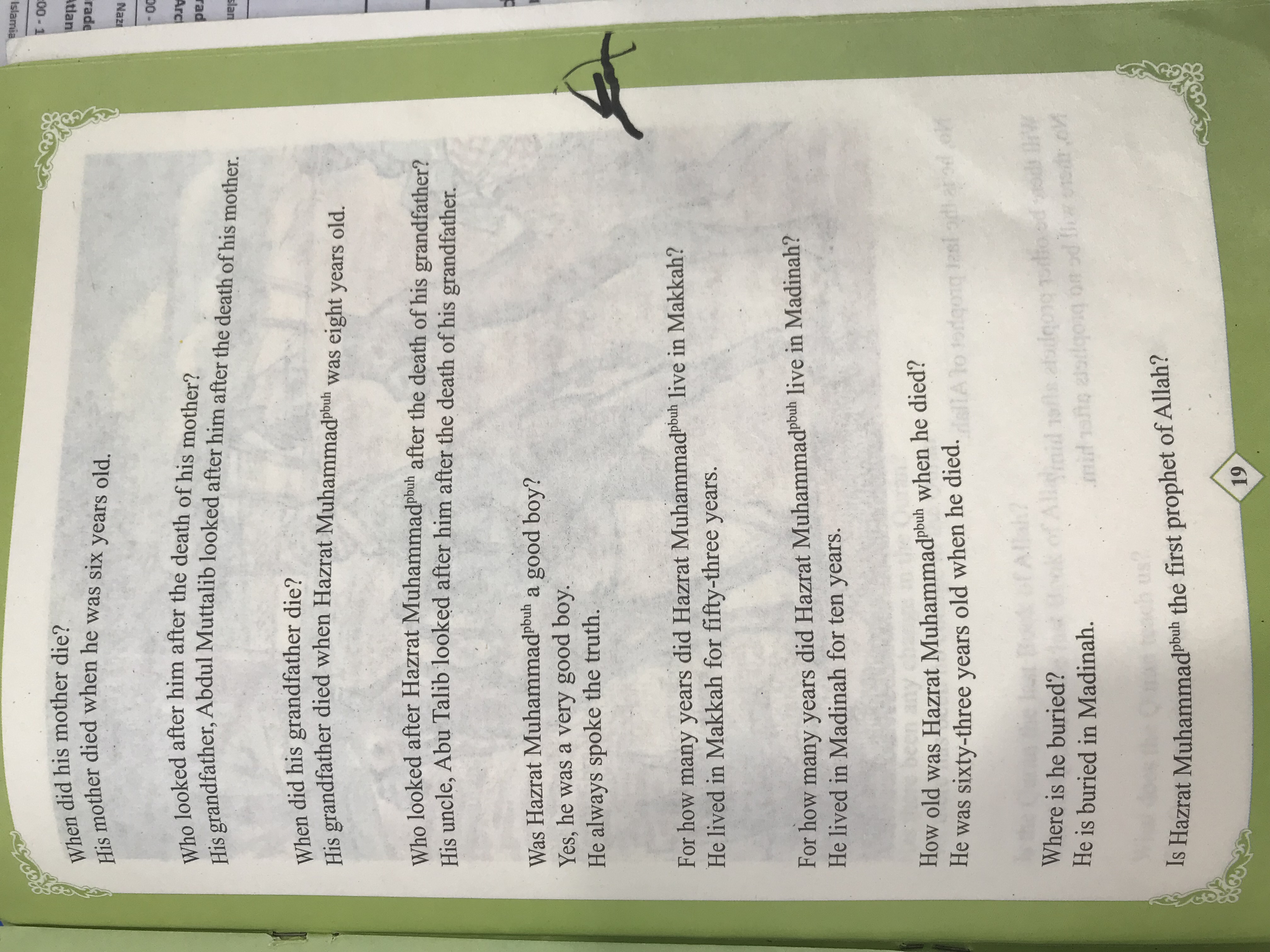 Topic: Our Prophet Homework Do Q # 13-14 on notebook from book page no. 19 and memorise the answers..