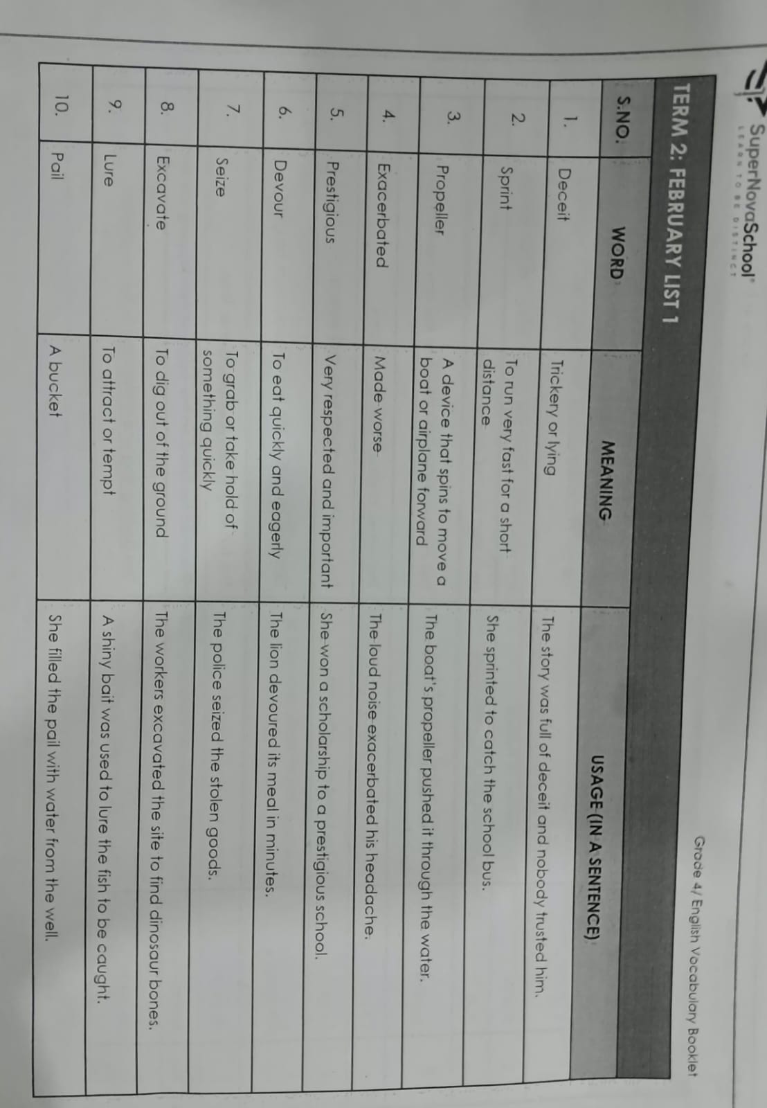 Grade 4 Mars* : Select 7 words from the vocabulary list (words meaning JGP on notebook) and make sentences..