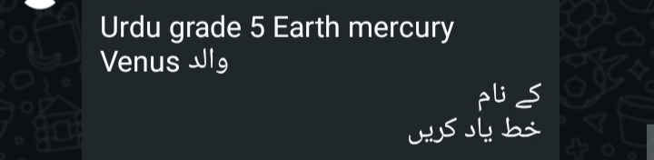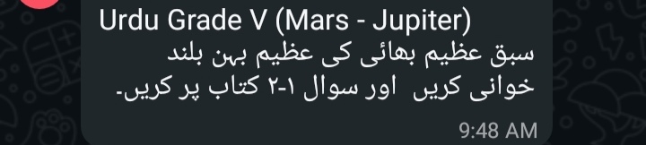 Islamiyat (all) *5 Venus 5 Mars* Reminder Chapter 5 belief in the hereafter and obedience to Prophet test tomorrow Also complete all previous work *5 Jupiter 5 Earth* Test on Thursday Chapter 5 Belief in the hereafter and Obedience to Holy Prophet Also complete previous work copies will be checked tomorrow .