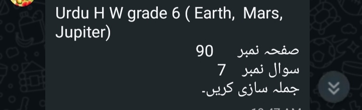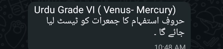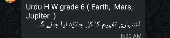 Islamiat VI Jupiter Test of Ch 1 will be taken on Wednesday.