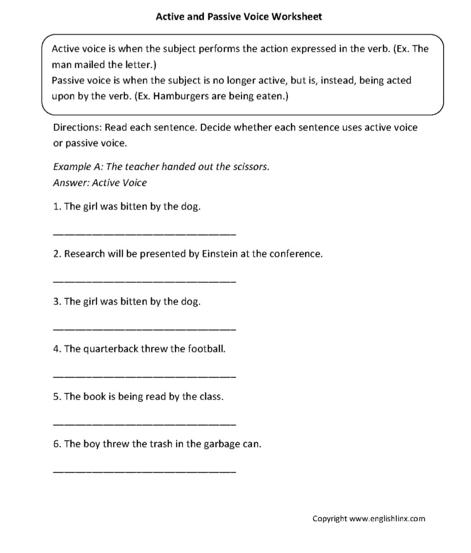 Do the Active and Passive voice exercise from the given worksheet.
