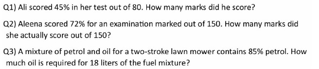 1) Complete Pages 12 & 13 of the Resource Booklet 2) Covert the following percentages into fractions in the simplest form: (Continue from the classwork) c) 20% d) 36% e) 15% f) 25% g) 80% h) 90% i) 50% j) 98% k) 60% l) 60% m) 22%.