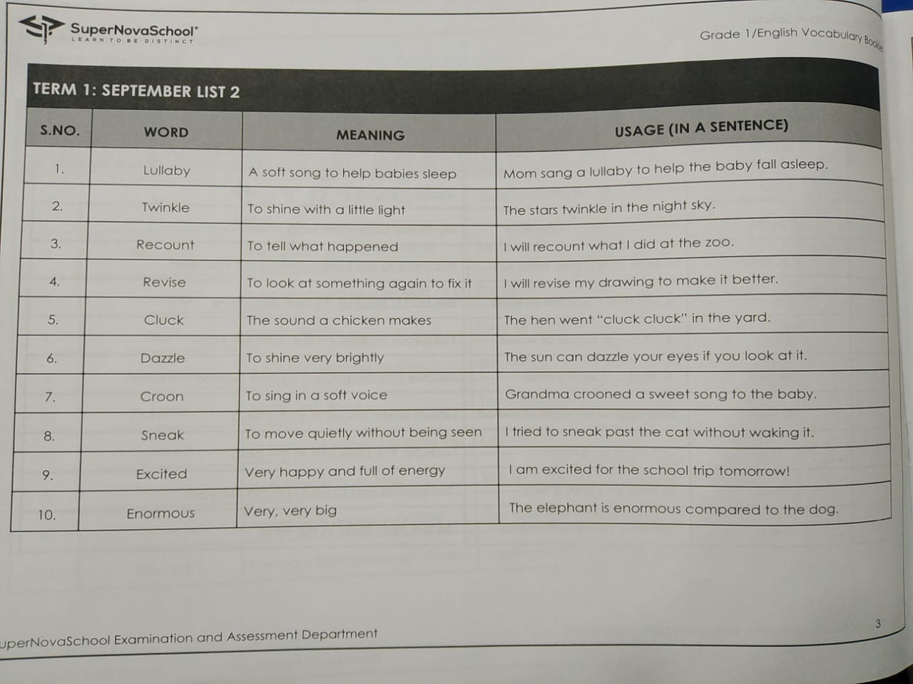Practice the wordlist of September list no 2 for test on Monday ( Revise,twinkle,sneak,excited,amorous ) .