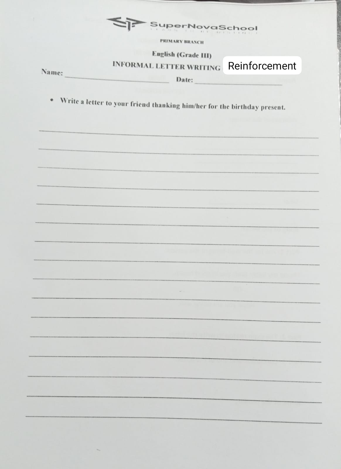* Revise letter writing pattern. Test will be taken tomorrow. .
