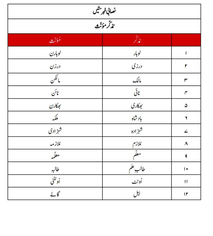 Alfaaz Mutaradif aur Muzakkar Monas ki revision karein..
